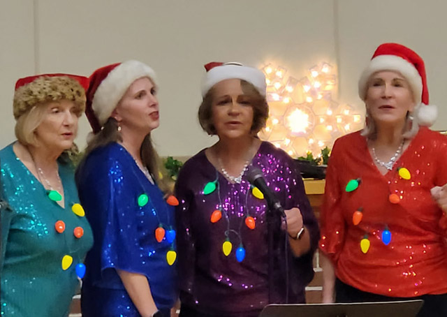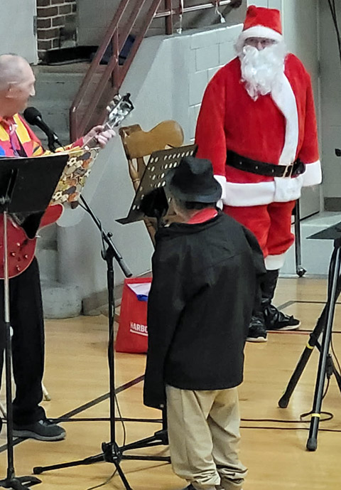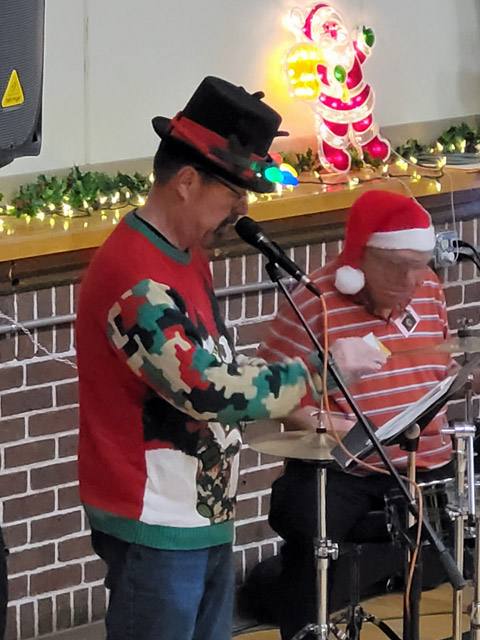 A group of our members and other performing guests, again ventured to Lakeland Village to entertain the residents at their annual Christmas Party. We always engage a regular tour bus from Alpha-Omega in order to have room for our drums, musical instruments, and sound equipment in the luggage area. Which means there were many empty seats on that bus that would have accommodated several more of our members for an enjoyable and inspirational evening. Another excellent opportunity missed, for some of you to participate in an event that occurs every year in early December. This trek has a long history and is said to have been happening for over 100 years. Back in the days when Elks Lodge #228 entertained with a concert orchestra, to present day when a small group of our members and other volunteers entertain with guitars, drums, and vocals. (We even have a ‘washtub bass’ for which we found that Paul Ryan has a unique talent.) We begin with a selection of traditional Christmas Carols and progress into some Country Rock that gets the excitement level into high gear. What a moving and gratifying feeling to see both Village staff members and those residents who are mobile, up dancing to the loud rythym of ‘Johnny B. Goode.’ Elvis’s ‘Hound Dog’ is another perennial Crowd favorite. ![]() ![]() Judy Dahl